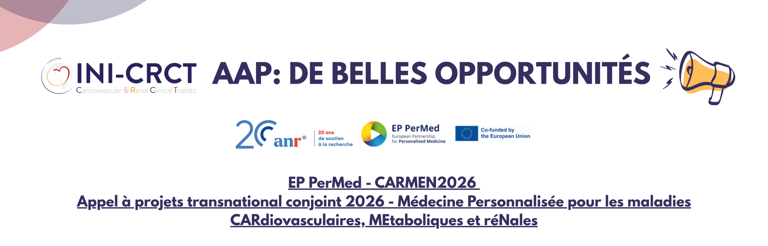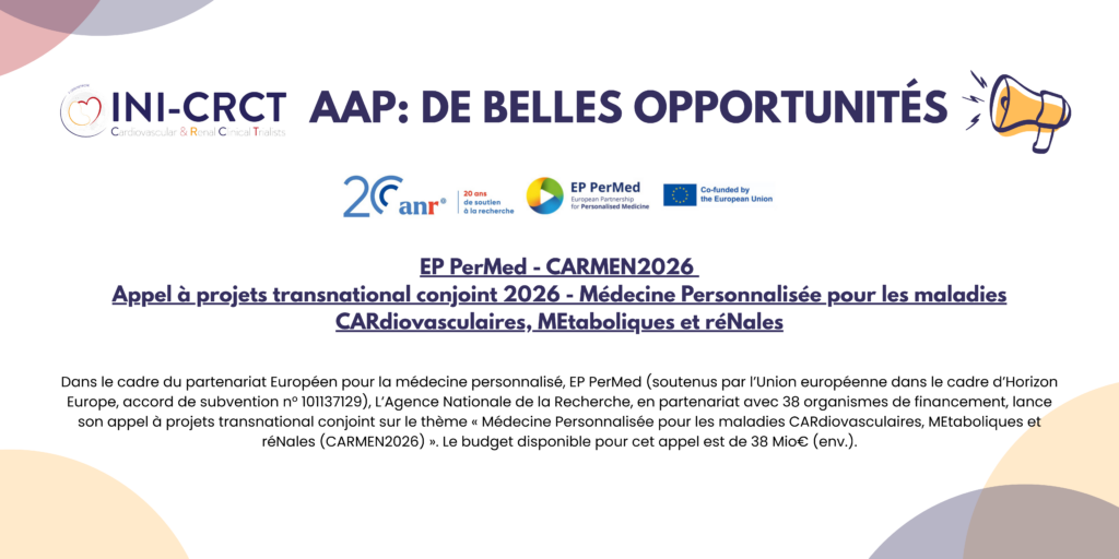 Pré-annonce : EP PerMed – CARMEN2026 – Médecine Personnalisée pour les maladies « CARdiovasculaires, MEtaboliques et réNales »